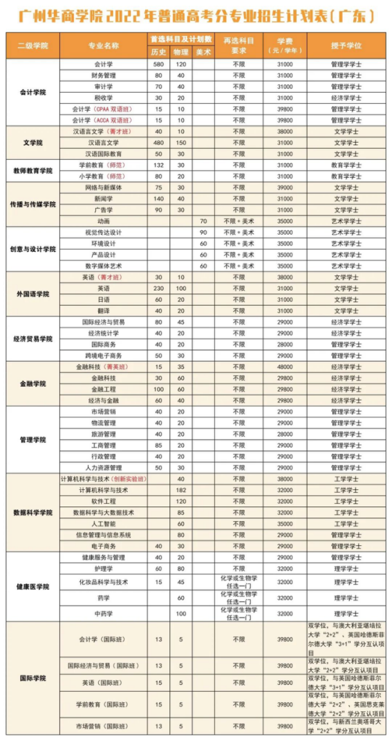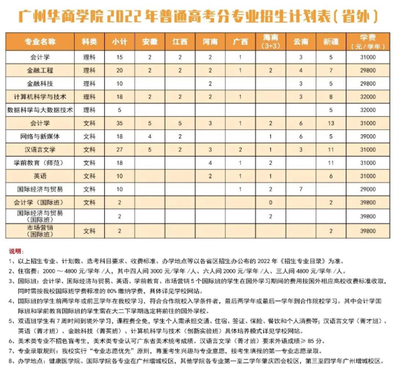 各省区招生计划表详见下图,各招生专业、计划数、专业组、收费标准、办学地点等以各省区招生办公布的2022年《招生专业目录》为准。