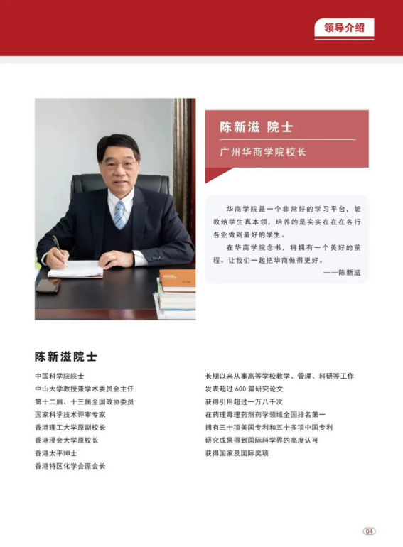 学校由世界著名生物化学家、中国科学院院士、香港浸会大学前校长陈新滋教授担任校长,诺贝尔化学奖得主Jean-Marie Lehn教授担任荣誉校长。