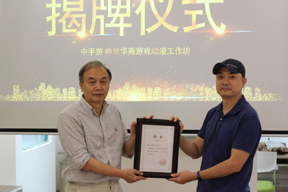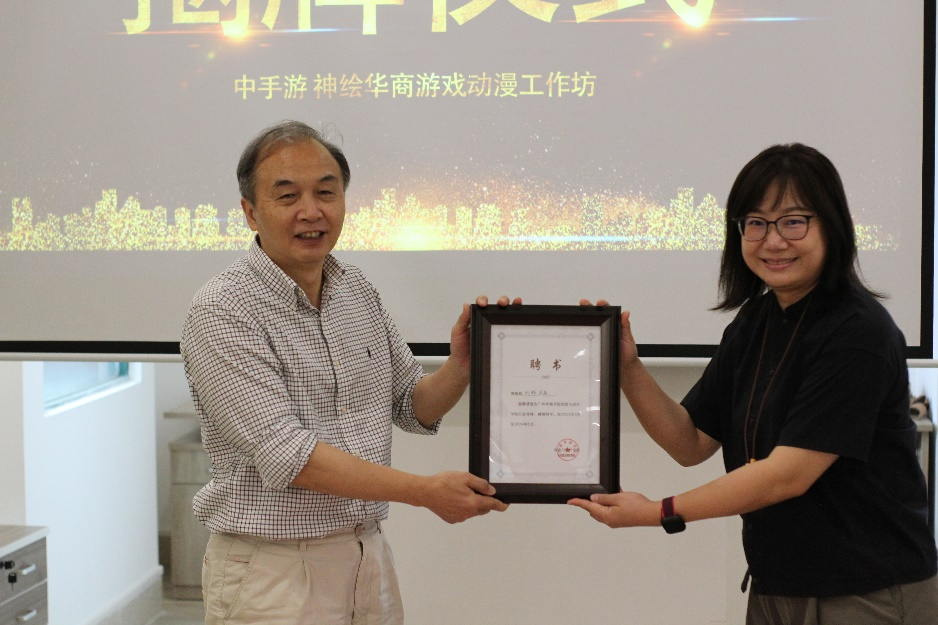 为促进双方合作与实践教学,米兰·官方版在线入口创意与设计学院聘请中手游神绘公司总经理骆俊、美术总监刘畅担任 “行业导师”,王列耀副校长为其颁发聘书。