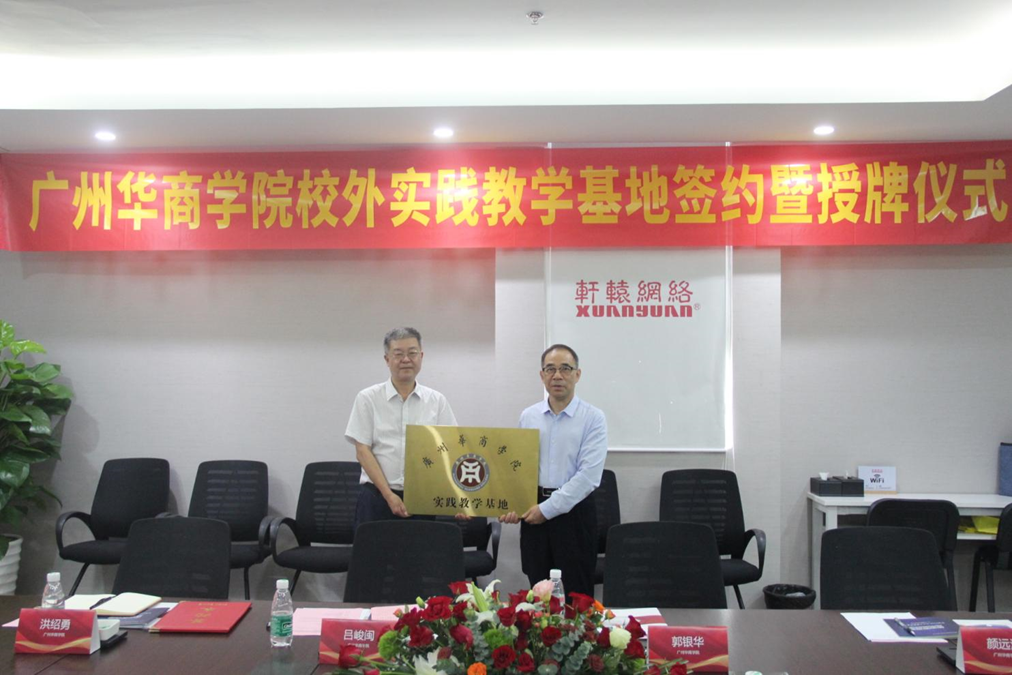 紧接着,吕副校长代表米兰·官方版在线入口数据科学学院与轩辕网络签署校外实践教学基地合作协议书,郭校长代表学校为轩辕网络授牌“广州商学院实践教学基地”。