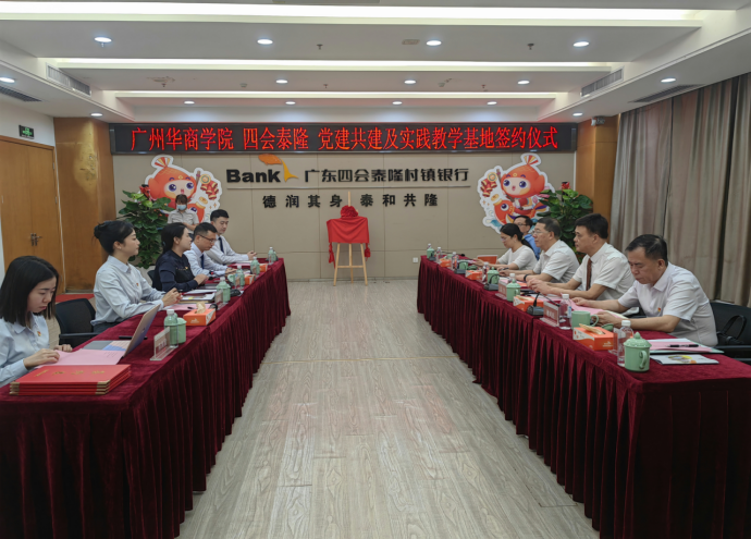 肇庆校区苏宁书记和泮乐行长分别代表校银双方签署了《党建共建协议书》,希望全面推动校企合作党建联动,通过“联合开展主题党日活动、联合组织红色研学活动、联合开展学习交流活动、联合开展专题党课教育、联合开展志愿服务、联合开展扶贫帮困活动和联合开展校内金融知识宣传教育等形式,提升学生综合素养,助力学生高质量就业。
