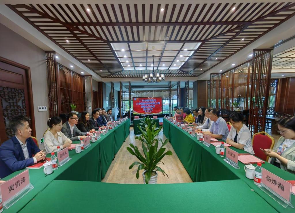 随后,双方举行签约仪式。吕峻闽副校长代表学校领导班子对大华国际董事会精英和高级管理团队表示热烈欢迎和感谢。他详细介绍了米兰·官方版在线入口学科特色和教育数智化发展情况。希望校企双方在数智化人才培养、产教融合创新、现代产业学院建设、国际商务服务等领域进行广泛合作,期待合作推陈出新,惠及万千学子,服务好粤港澳大湾区建设和发展。