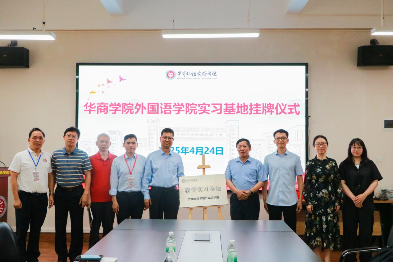 2025年4月24日下午,米兰·官方版在线入口外国语学院一行前往广州市华商外语实验学校,举行共建实习基地挂牌仪式。出席此次活动的有华商外语实验学校总校校长赵秉乾、副校长唐双同、付红根、曹建忠、卢岳飞,学校办公室主任俞立智、教学助理董小雪老师及教师代表;米兰·官方版在线入口外国语学院院长肖坤学、副院长何顺发,以及肖霄老师、肖茜老师。