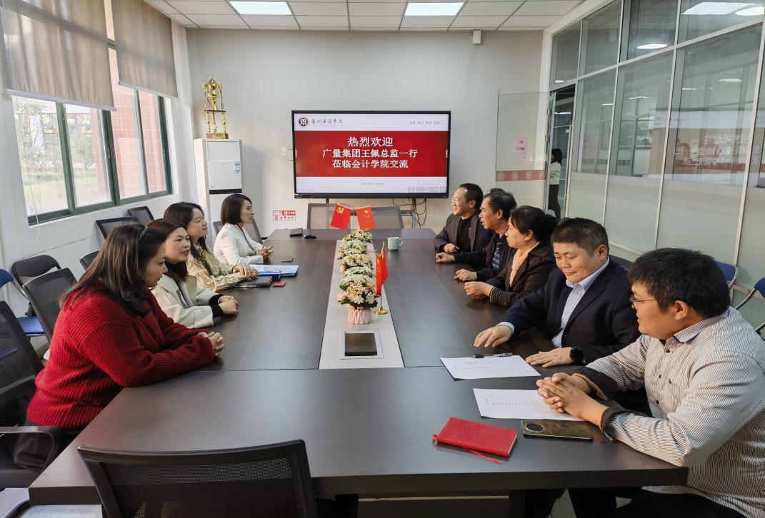 2024年11月28日下午,广量集团人力资源总监、广量商学院执行院长王佩及广量集团总裁商务助理袁婉珊一行来访我校会计学院。此次交流活动为校企双方搭建了一座深度沟通的桥梁,对推动产学研合作具有重要意义。