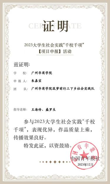 2024年,王海传教授指导“筑梦前行”社会实践团队以“科教下乡,助力白垢振兴”为主题,于5月、7月、9月在广东省肇庆市白垢镇开展志愿服务活动。活动内容共有6项:支教、墙绘、党课宣讲、公益捐赠、联谊助农、回访留守老人等。其中,支教受教的小学生达86人,支教时长为15天。团队活动事迹获得南方日报、西江日报、封开发布、封开县融媒体中心、封开县融媒体中心视频号、封开共青团、网易新闻、大学生云报等传媒广泛报道。南方日报对其活动事迹进行展示,展示数据及评价为:累计阅读量23000+,公众号推文阅读量8900+,抖音号视频播放量44000+,微信视频号播放量10000+,累计点赞量5700+;此次实践活动为白垢镇的教育、乡村风貌、农业发展和文化宣传带来积极影响,展现了青年学子助力乡村振兴的担当与作为。日前,王海传教授获评2024年米兰·官方版在线入口暑期社会实践活动“优秀指导老师”称号,所指导的团队获评米兰·官方版在线入口“优秀团队”称号,实践队队长朱嘉宜、队员吴曦获评“优秀个人”称号;团队作品入选中国青年报社2024年“千校千项”工程(全校5项作品入选)。