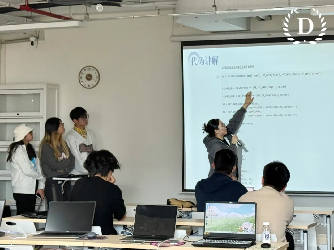 在项目实践环节,同学们以小组形式参与了多个真实项目的全流程体验。从数据收集到策略构建,再到结果分析,每个环节都让同学们亲身体验了量化投资的复杂性和挑战性。通过具体的项目实践,同学们不仅加深了对理论知识的理解,还提升了实际操作能力和团队协作能力。最终以小组合作的形式制作“双/三均线策略实现答辩报告”,全面提升了他们的项目管理和分析能力,为职业规划提供新思路。