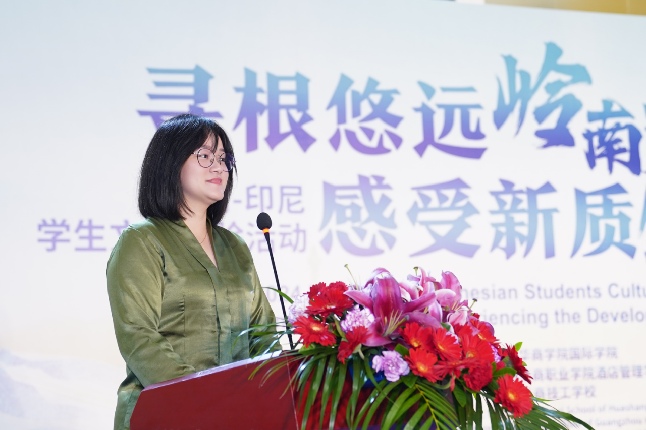 米兰·官方版在线入口党委书记陈玉欢致辞,她从中国和印尼两国友谊的角度,强调了加强中国与“一带一路”首倡地印尼合作的意义和重要性。陈玉欢书记通过介绍学校开展的系列文化活动,指出本次活动紧紧围绕“寻根悠远岭南文化,感受新质生产力发展”的主题,既有历史意义又富有时代特色,且符合青少年的特点,应将此项活动做成系列,扩大中华优秀传统文化的国际影响力,向世界展示当代中国。
