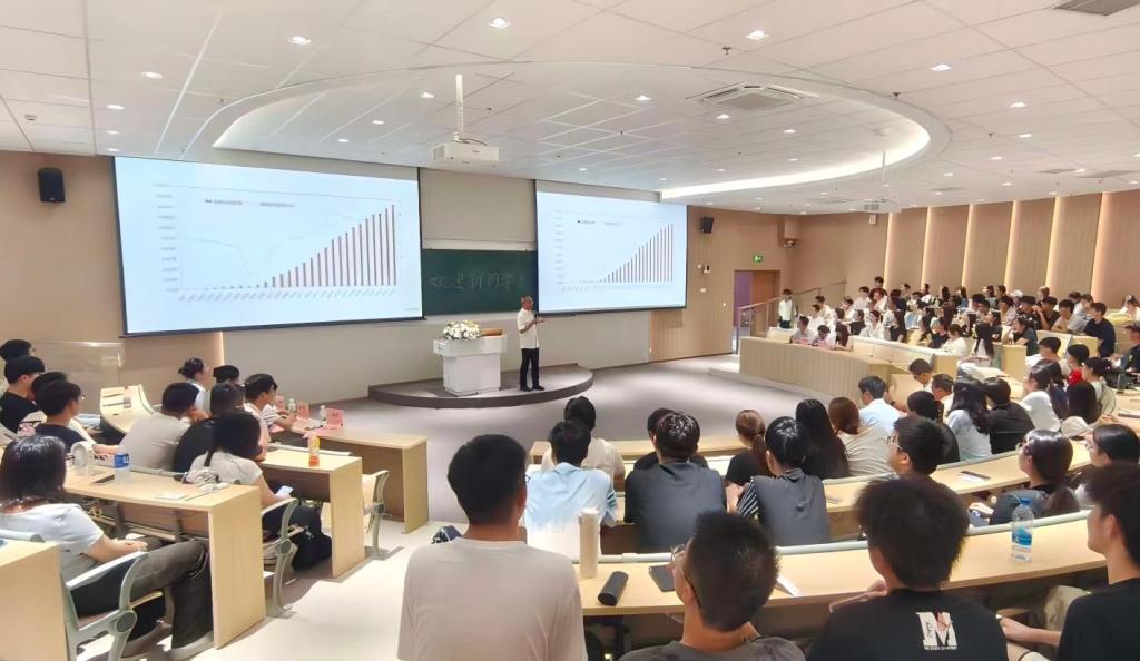 金融科技系主任谢一颗老师围绕“金融+科技”融合趋势,解读了区块链、大数据在支付清算、智能投顾等场景的应用,鼓励新生掌握Python、SQL等工具,通过学院教学、科研、实训平台,培养技术落地能力。