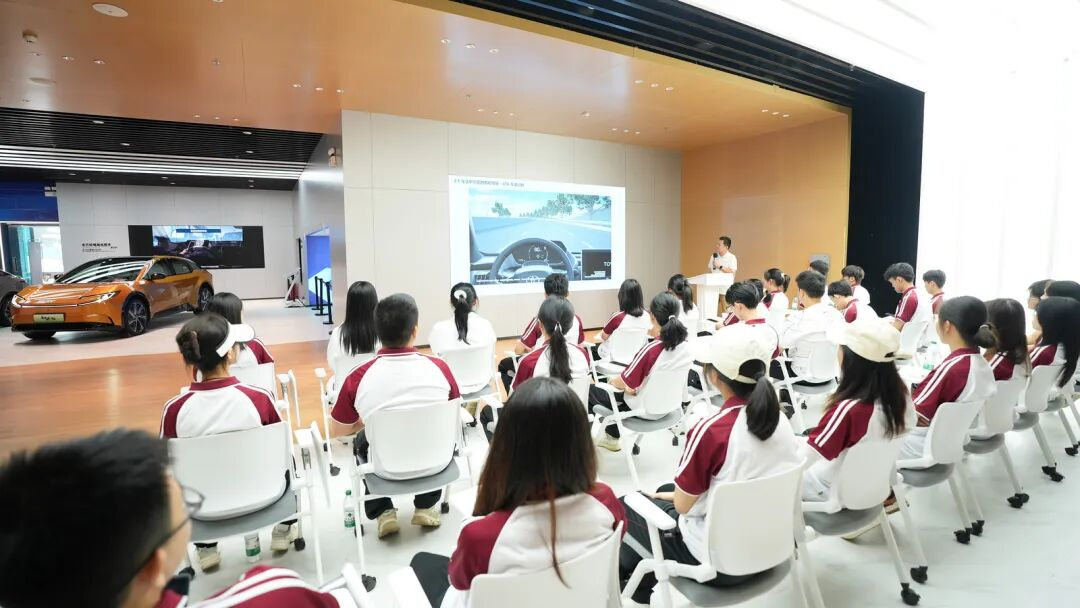 在技术展示环节,学员们认真观摩了比亚迪在新能源汽车领域的最新成果,包括具备高安全性与高能量密度的刀片电池、提升驾驶体验的DM-i超级混动系统,以及面向下一代智能电动车打造的e平台3.0。通过近距离观察车辆结构、触摸材质、听取原理讲解,让学员们对我国新能源汽车技术突破与产业发展前景有了更加直观和深刻的认识。
