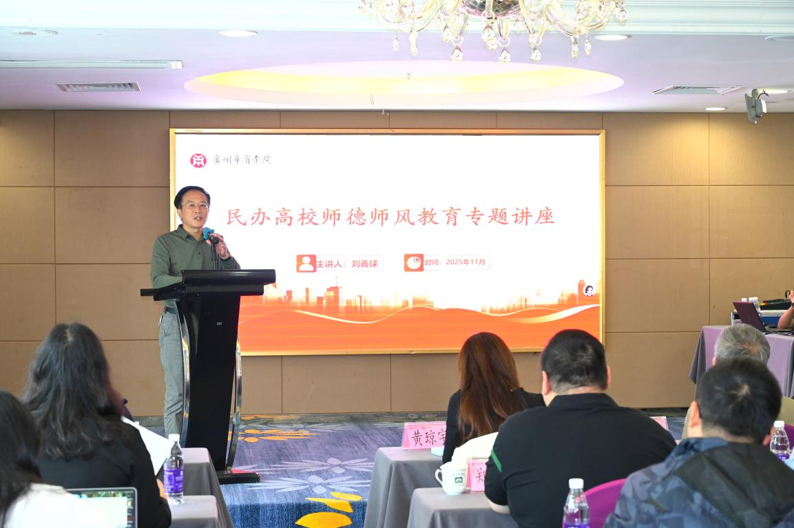 在专题讲座环节,刘善球书记以“民办高校师德师风教育专题”为题进行深入讲解。他强调,民办高校的师德师风建设是坚守教育初心、赢得社会信任、适配应用型人才培养的核心保障。他系统阐释了以“爱岗敬业、关爱学生、教书育人、为人师表、终身学习”为核心的师德内涵体系,并针对当前存在的师资结构多元、监管机制薄弱等现实挑战,提出了从制度保障、教育引导、监督约束到激励赋能的系统性建设路径,为民办高校落实立德树人根本任务提供了实践指引。